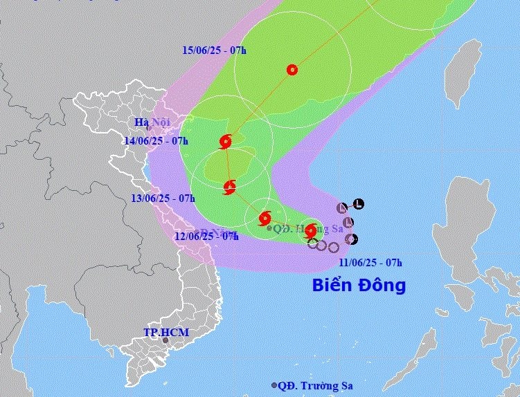 Theo Trung tâm Dự báo Khí tượng Thủy văn Quốc gia, sáng sớm ngày 11/6, áp thấp nhiệt đới trên Biển Đông đã mạnh lên thành bão số 1. Tâm bão lúc 1h sáng nằm ở khoảng 15,5 độ Vĩ Bắc; 113,8 độ Kinh Đông, cách quần đảo Hoàng Sa khoảng 240km về phía Đông Đông Nam, với sức gió mạnh cấp 7 (50-61km/h), giật cấp 9. Bão di chuyển theo hướng Tây Tây Bắc với tốc độ khoảng 5-10km/h và có khả năng tiếp tục mạnh lên, đạt cấp 10-11, giật cấp 12 trên biển.